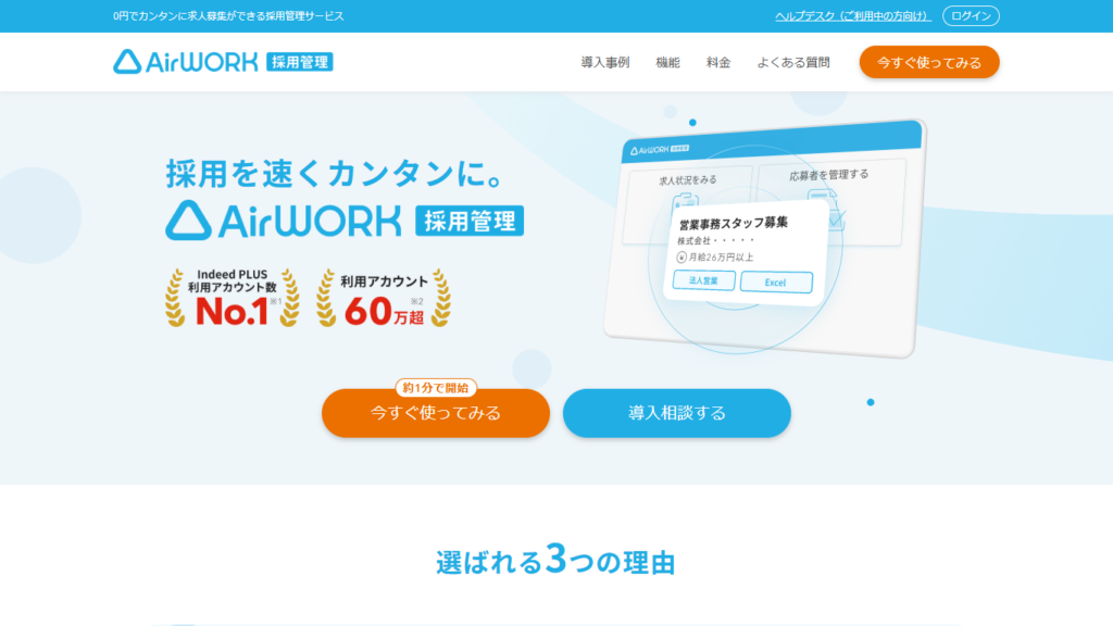 そこで注目されているのが、無料で求人掲載から応募者管理まで行える「エアワーク(Airワーク)」です。エアワークは飲食店や小売業だけでなく、美容室の採用にも相性が良いツールとして活用が広がっています。