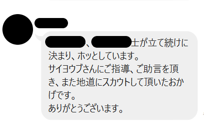 「絶対にクライアントの採用成功をさせる」というコミットしていく姿勢に定評があり、「佐々木さんのような人材が欲しい」とクライアントに言われることも多数。